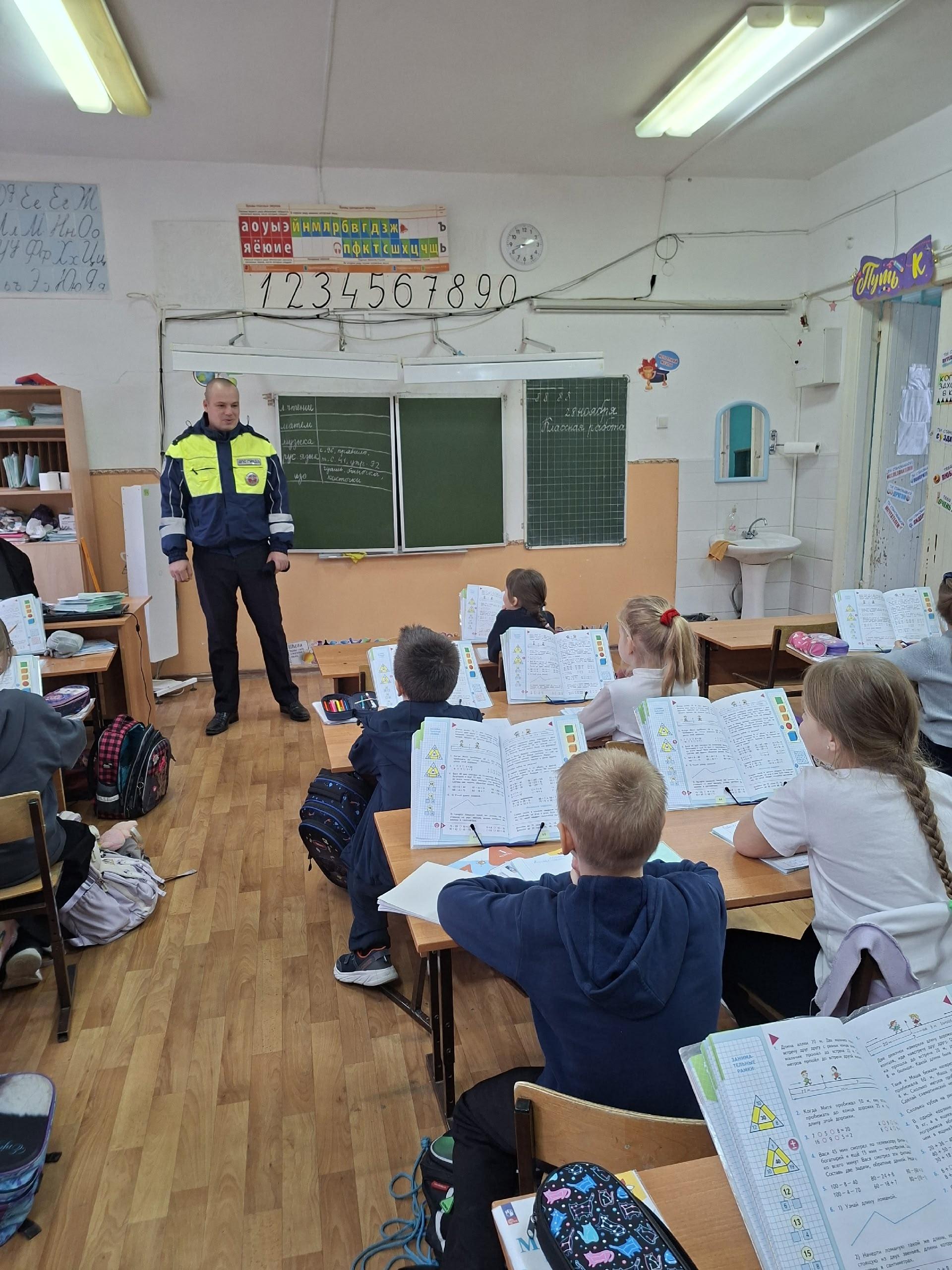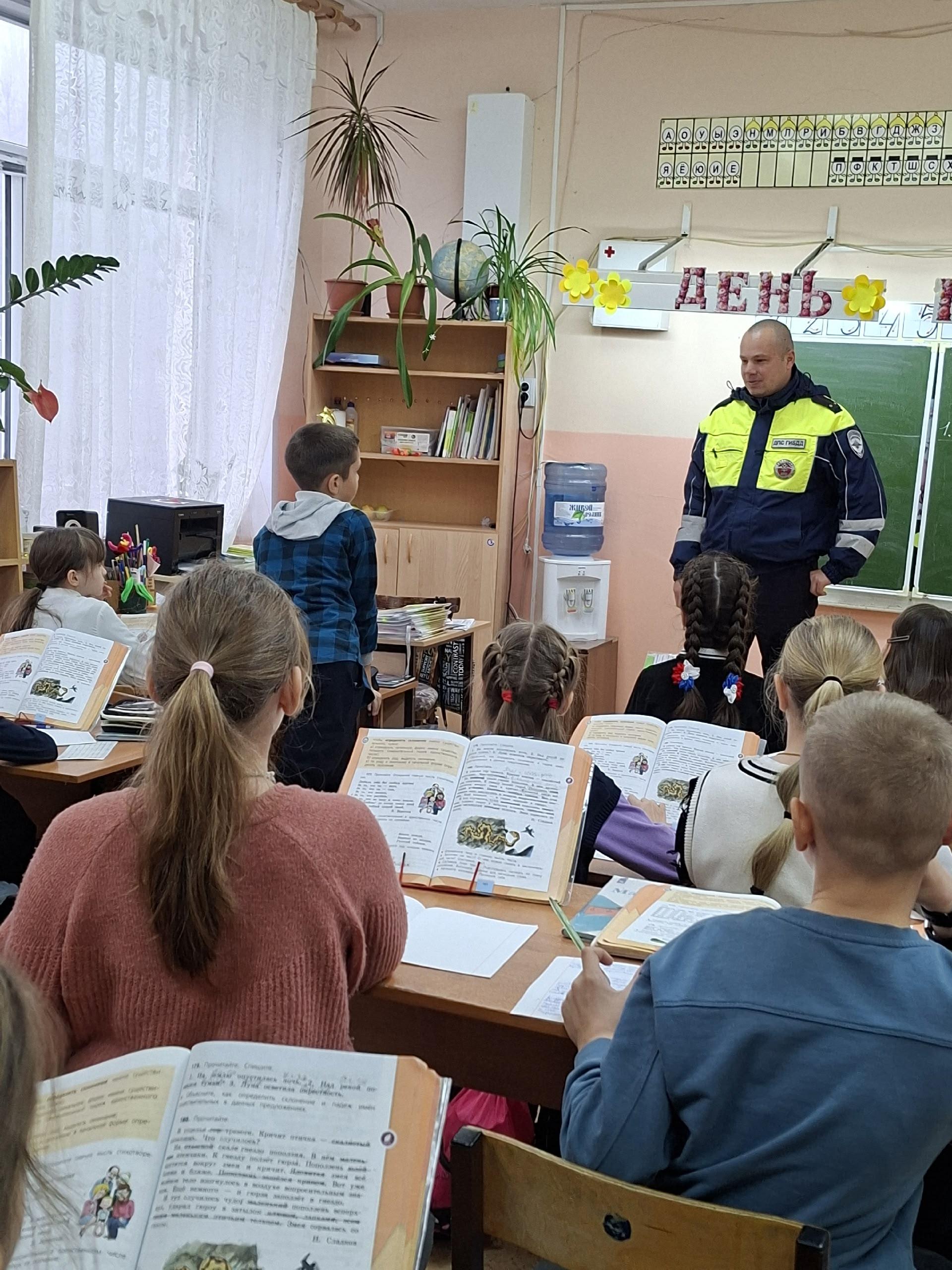 В рамках городской акции "Вместе с родителями- за безопасность детей на дорогах" школу посетил инспектор ГИБДД Корнеев Алексей Николаевич.